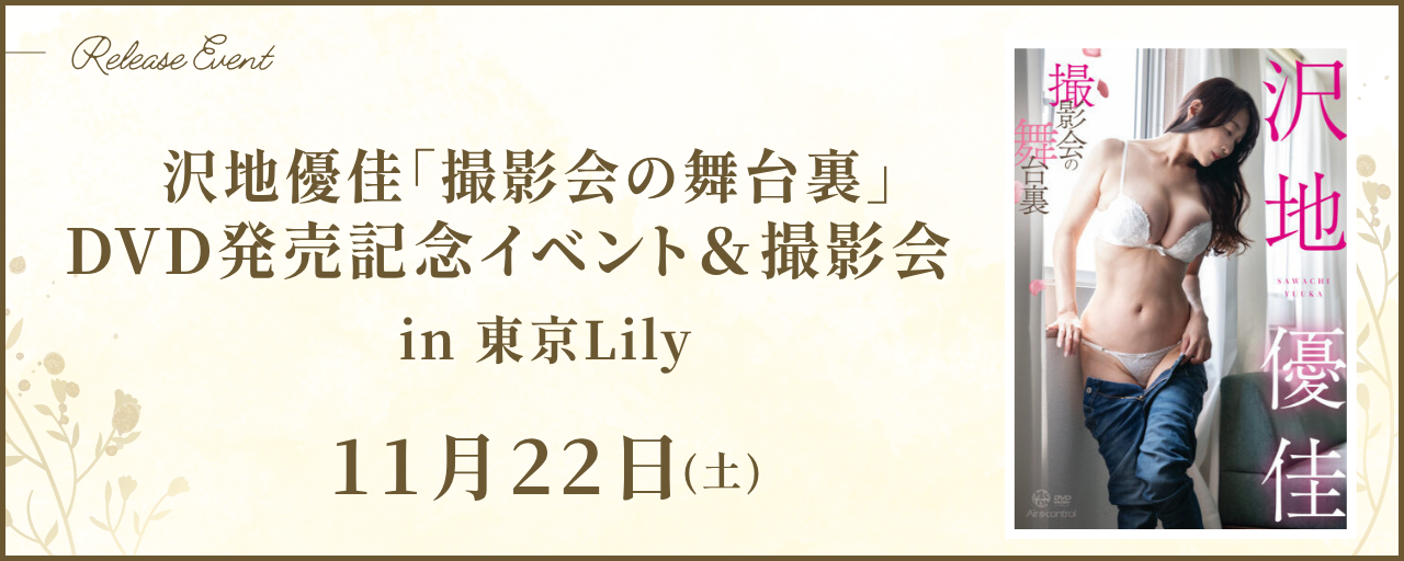 沢地優佳「撮影会の舞台裏」DVD発売記念イベント&撮影会開催決定! 沢地優佳 さんの最新DVD『撮影会の舞台裏』の発売を記念し、 東京Lilyスタジオにて発売イベントおよび撮影会を開催します。特典や撮影チャンスをご用意しています。 ... 2025年10月31日