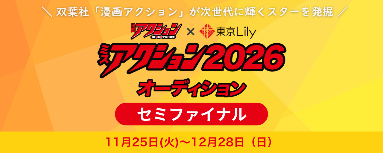 「ミスアクション2026」セミファイナル ミスアクション2026 数々の有名グラビアアイドルが表紙を飾り、人気漫画を多数輩出、連載する双葉社発行「漫画アクション」が開催する「ミスアクション」<br>グランプリには、なんと紙での写真集発売の副賞を用意するなど、このミスコンを通し、次世代に輝くスターを発掘、育成していきたい... 2025年11月18日