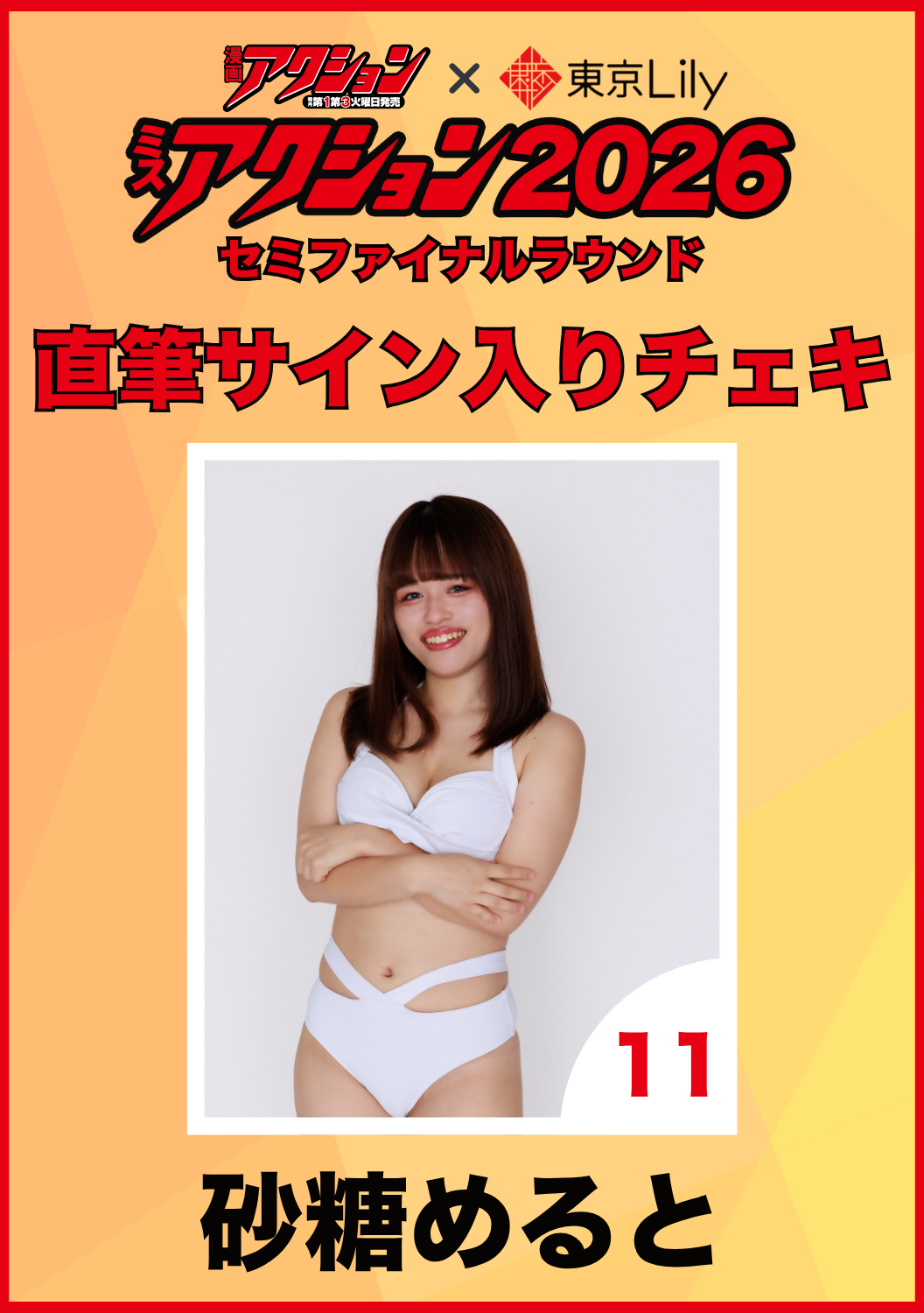 - 「ミスアクション2026」セミファイナル 砂糖めると 直筆サイン入りチェキ